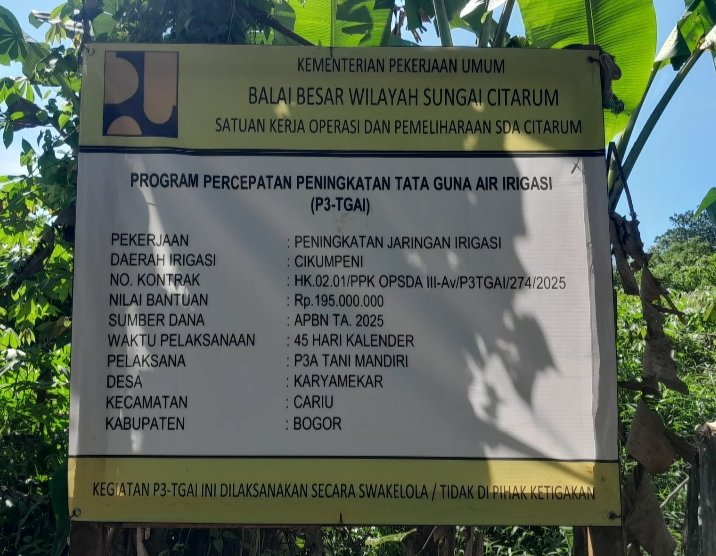 Bogor-  melaksanakan Program Percepatan Peningkatan Tata Guna Air Irigasi (P3-TGAI) pada pelaksanaan kegiatan P3A di Kelompok Tani mandiri sangat dirasakan manfaatnya bagi lahan pertanian Masyarakat Desa Karyamekar Kecamatan Cariu Kabupaten Bogor