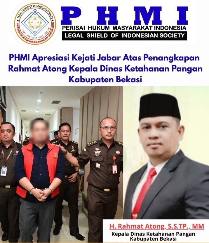 PHMI Apresiasi Kejati Jabar Atas Penangkapan Rahmat Atong Kepala Dinas Ketahanan Pangan Kabupaten Bekasi
