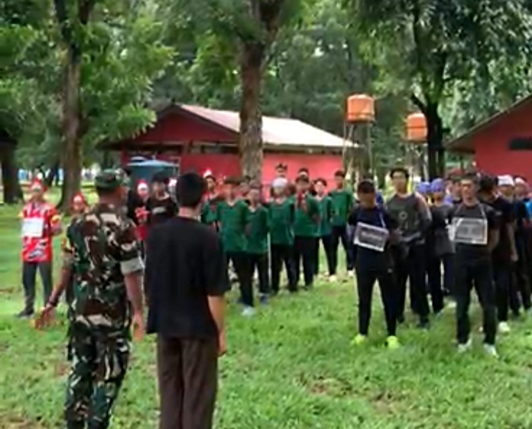 Salah satu kegiatan Training Camp adalah baris berbaris yang dilatih oleh Babinsa dari Koramil Cileungsi.