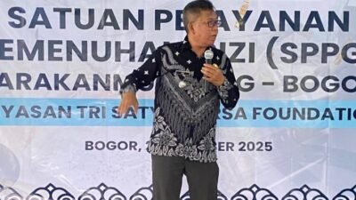 BOGOR | Program Makan Bergizi Gratis (MBG) atau Satuan Pelayanan Pemenuhan Gizi (SPPG) kini resmi hadir di Desa Parakanmuncang, Kecamatan Nanggung, Kabupaten Bogor. Dapur yang akan menjadi pusat penyediaan makanan bergizi tersebut secara resmi diresmikan, Jumat (24/10/2025).